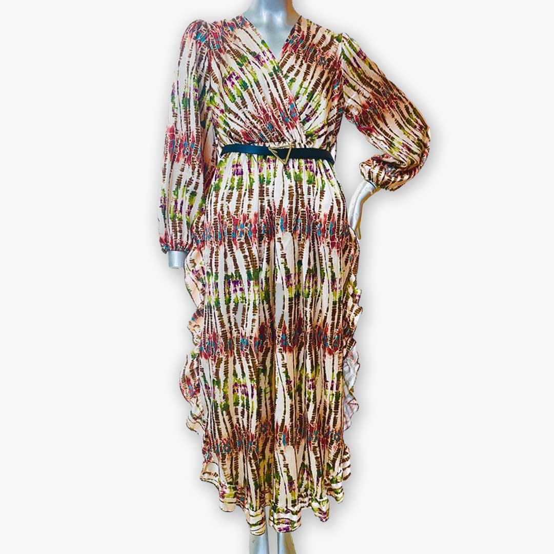•Eye-Catching Design: The unique print and belted waist combine to create a statement piece that stands out in any setting.