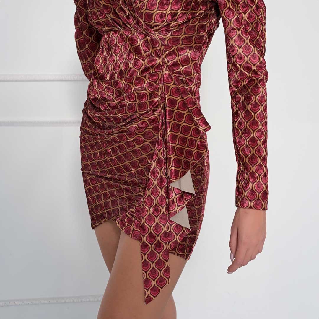 The Beetroot Dress is a captivating blend of sophistication and daring style. Crafted from high-quality fabric, this dress features a rich beetroot color with an intricate pattern that adds depth and texture. The wrap-style design accentuates your curves, while the long sleeves provide a touch of elegance. The dress is tailored to perfection, ensuring a flattering fit for all body types.