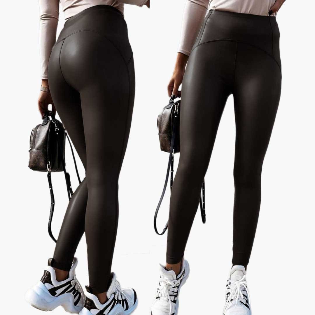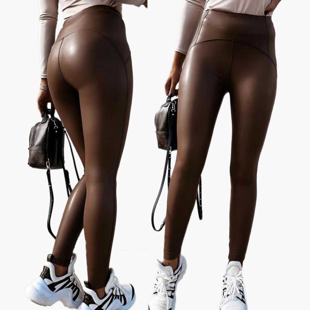Our leggings are meticulously made from high-quality faux leather (PU), offering a luxurious feel without compromising on ethics. Available in classic black and rich brown, these leggings are designed to enhance any outfit with their glossy finish and tailored fit. The stretchy material ensures a flattering silhouette while providing all-day comfort, making them ideal for both casual and sophisticated ensembles.
