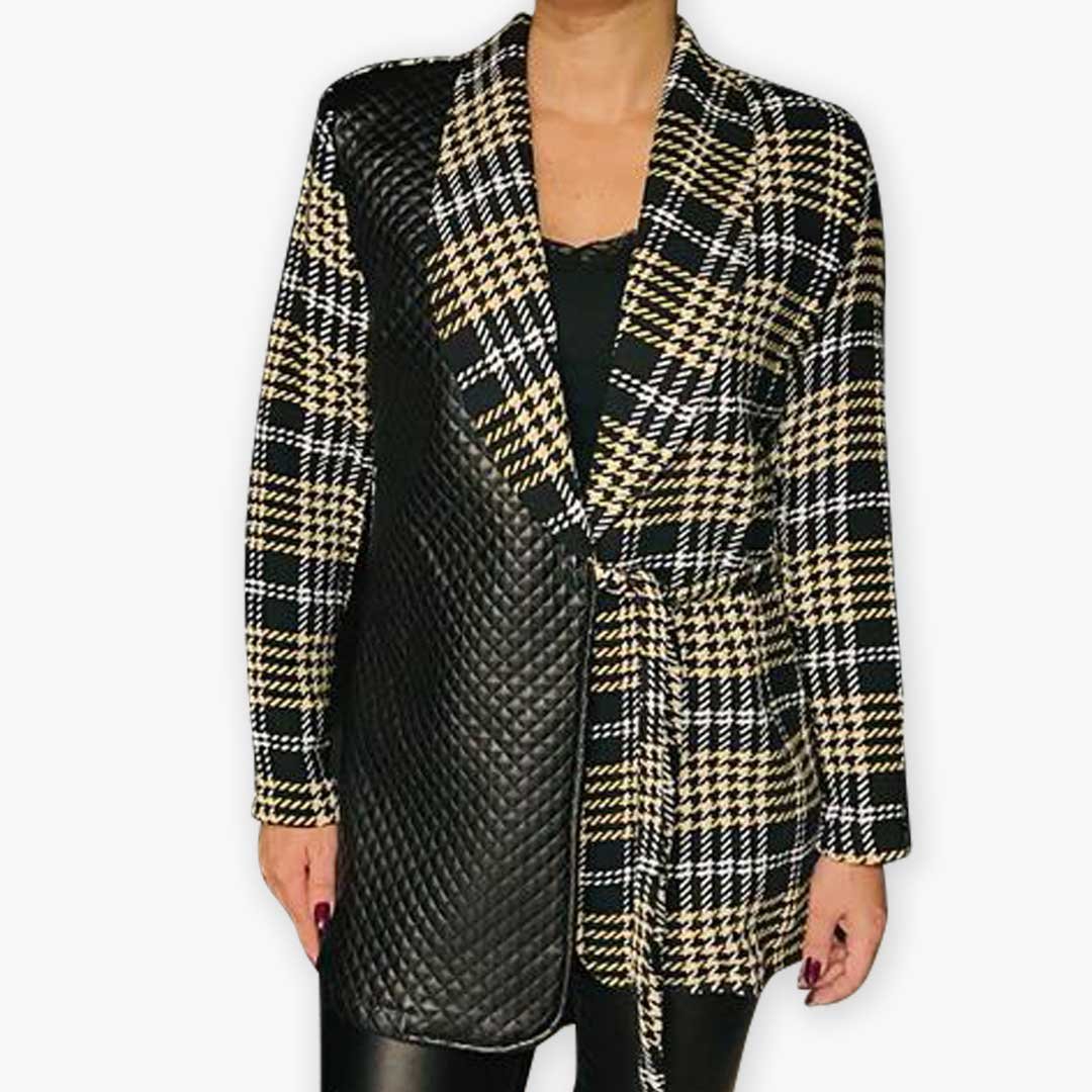 Crafted with meticulous attention to detail, the Semi-Leather Blazer boasts premium materials that guarantee both comfort and durability. The soft yet sturdy leather sections add a touch of luxury, while the plaid fabric lends a timeless charm. The blazer’s tailored fit enhances your silhouette, ensuring a flattering and polished appearance.
