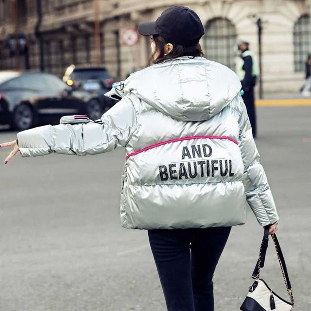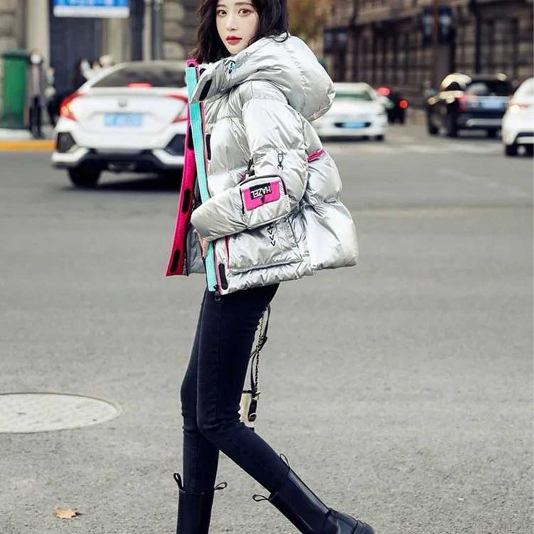 Step out in style and warmth with our Women’s Silver Metallic Down Puffer Jacket – where fashion meets function for the ultimate winter ensemble!