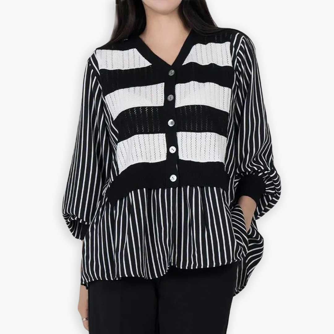 Bold Striped Pattern: The striking black and white stripes create a visually appealing contrast, making this cardigan a standout piece.