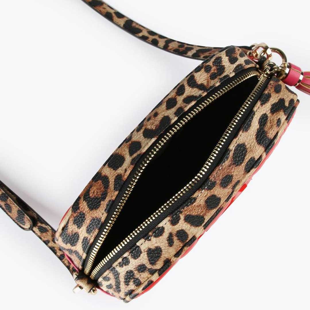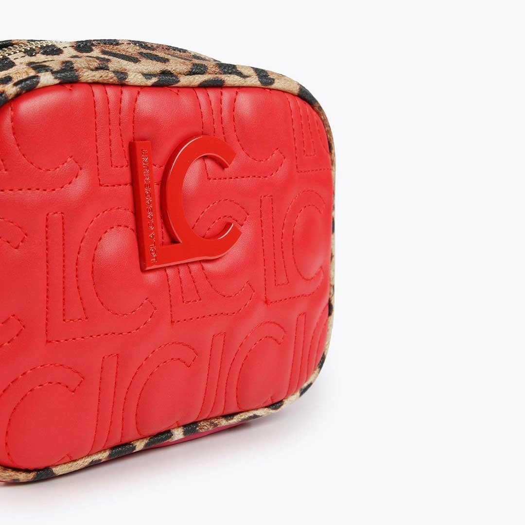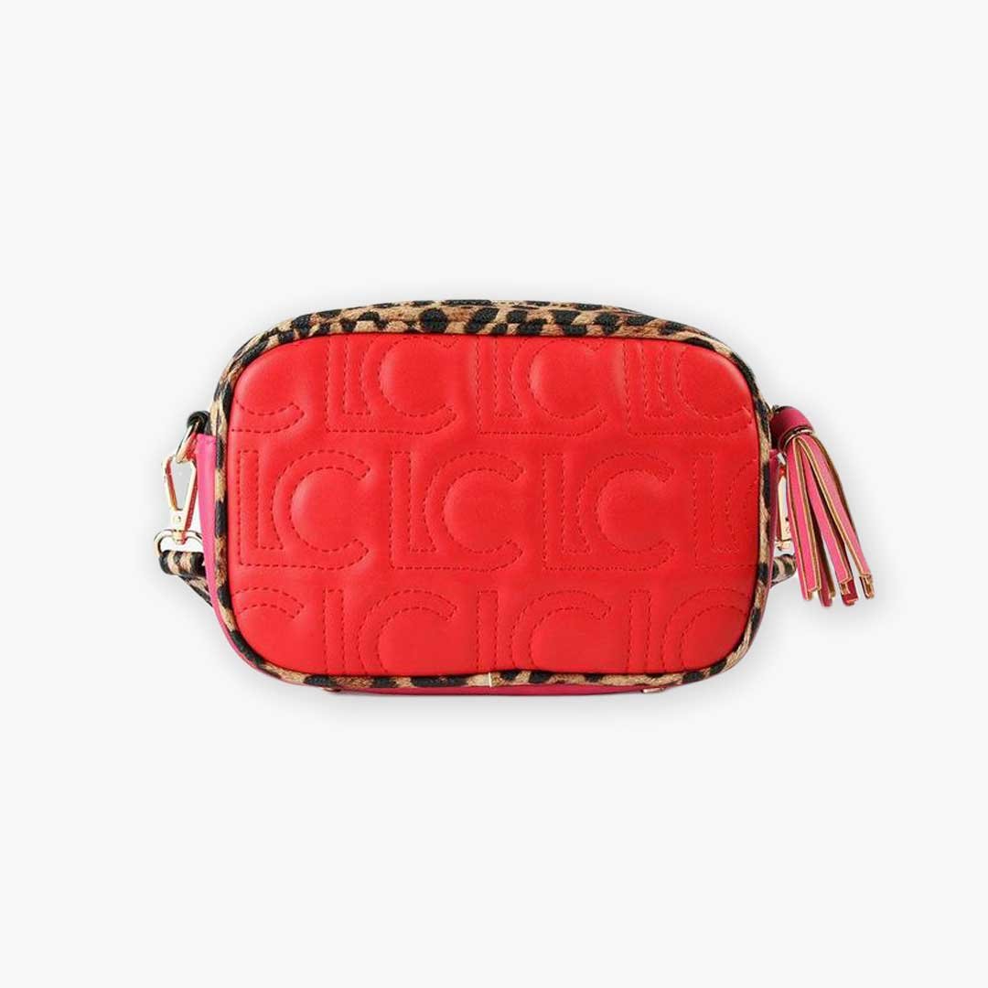Discover the epitome of style with our Two-Tone Red Crossbody Bag by Lola Casademunt – a fashion-forward accessory that seamlessly blends modern flair with timeless sophistication. This Spanish-made gem features a striking animal print, a lacquered logo, and a detachable, adjustable strap for a personalized touch. Elevate your look with this on-trend crossbody that effortlessly marries form and function.
